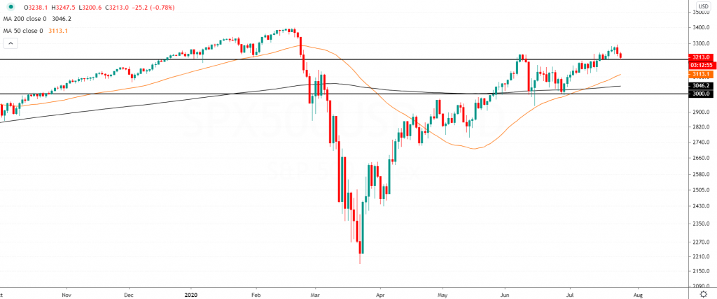 However, price action could be supported near the 50-day moving average around the 3100 level.