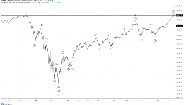 We talked about SPX500 a few sessions back. Its structure remains to hint to a bullish impulse I-II-III-IV-V of the cycle degree.