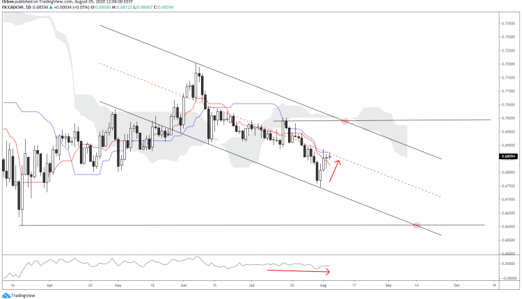 CADCHF bears have kept the pressure on since the 0.72 high on the 5th of June. Since the high, we have witnessed two attempted breaks towards the lower channel.