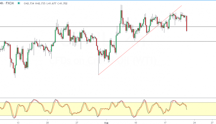 At the time of writing, WTI crude oil is trading below the 42.00 level, trading almost $1 lower.