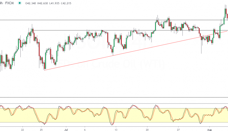 But if the consolidation continues, then oil could possibly be at risk of falling back into the range within the 41.00 and 42.00 levels.