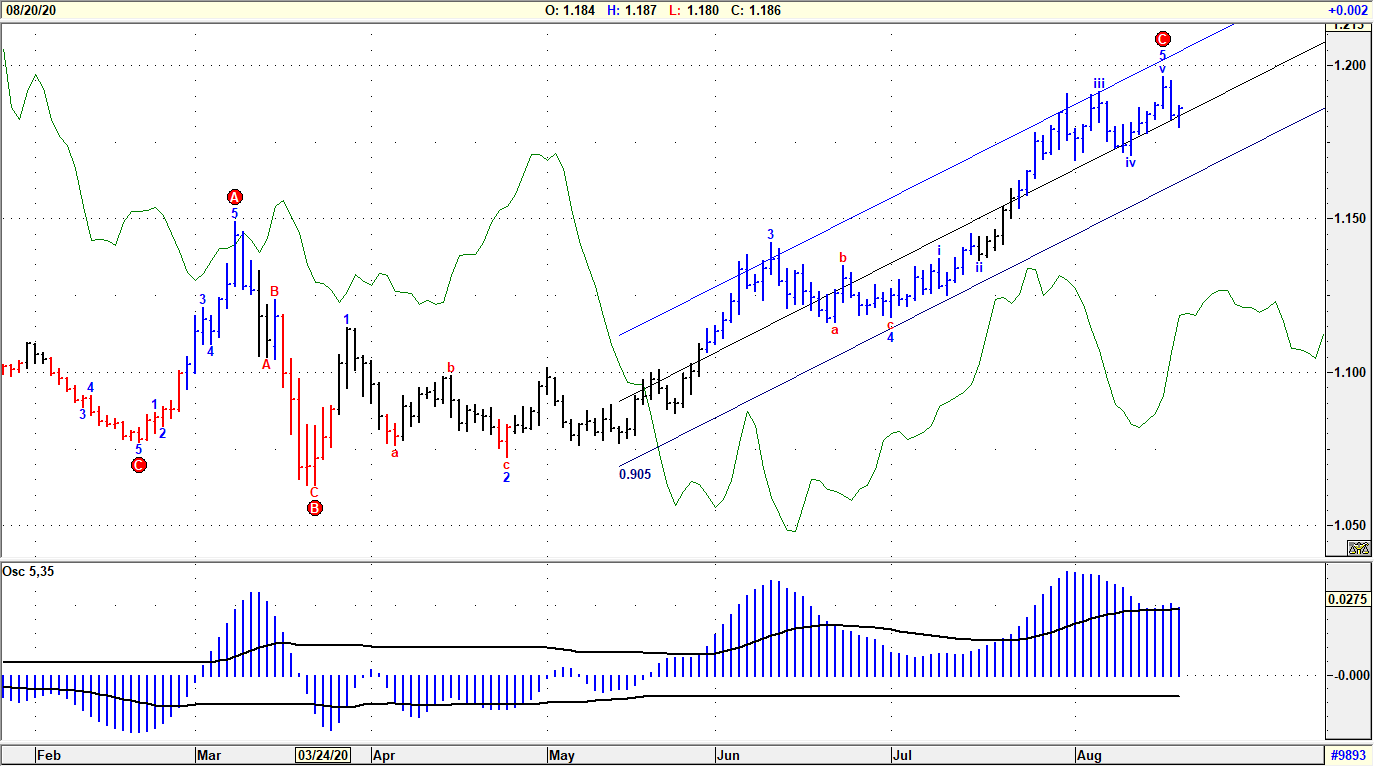Preciso e puntuale il precedente report sul cambio EUR/USD che osservava la forza della valuta USA in fase di assorbimento nei confronti delle principali valute di riferimento, Euro compreso. Il trend principale di EURUSD è al momento favorevole alla valuta europea e ben perimetrato da un canale di regressione, originato sui minimi di marzo, che intercetta una fondamentale resistenza, di valenza intermedia, a quota 1.20 cioè su 1 STDV sopra la retta di regressione.
