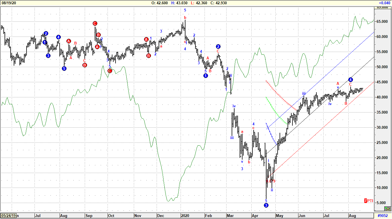 Il quadro tecnico generale evidenzia in linea teorica uno sganciamento dallo scenario che inizialmente prevedeva un incastro di Onda 4 del processo impulsivo ribassista originato sui massimi di inizio anno a quota 65, ma la sequenza anomala tra movimenti secondari e minori ha obbligato a prevedere uno scenario alternativo ancora in via di definizione e comunque piuttosto complicato da mappare.
