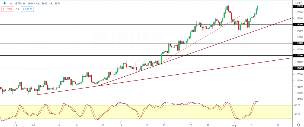 Above the 1.1900 level, the next key target will be the 1.2000 handle. This will mark another major milestone in tHE EURUSD currency pair that has only managed to rise since late May.