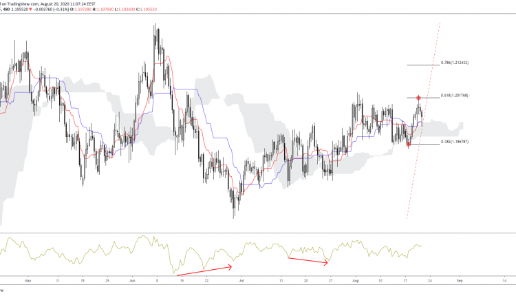However, a bounce is expected at the lower regression as we see a bullish divergence supporting a potential move towards the upside. In the short term, prices could then progress once again past the 61.8% and 50%, and even past the 1.20 psychological area, supporting the aforementioned restest.