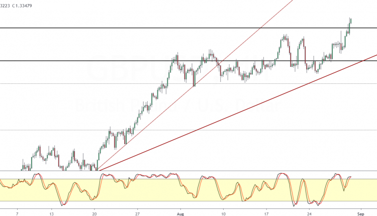 This could mean that the 1.3300 level could be tested for support. If the support holds, then we expect a continuation to the upside.