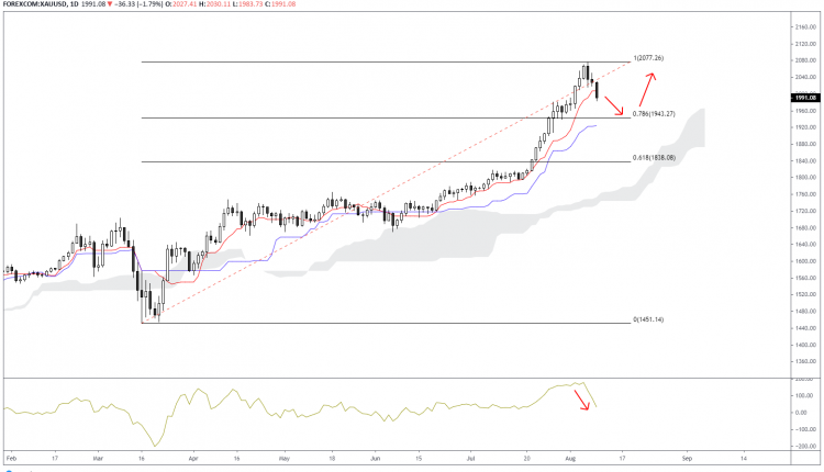 Gold soared to record highs on the 7th of August. However, recent risk sentiment has evidently shifted.