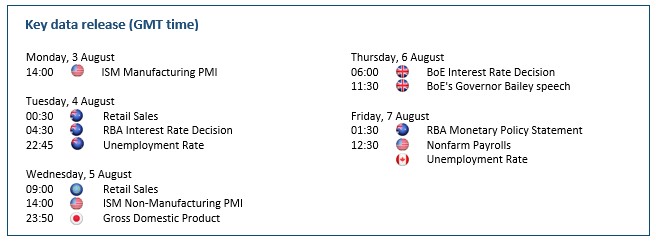 The Reserve Bank of Australia is expected to leave rates at an all-time low of 0.25%, and the market will focus on its guidance in light of the latest outbreak of coronavirus in Victoria. While a confident central bank could support the Aussie, global sentiment in regard to risk assets is more likely to dictate the course of action on the chart.