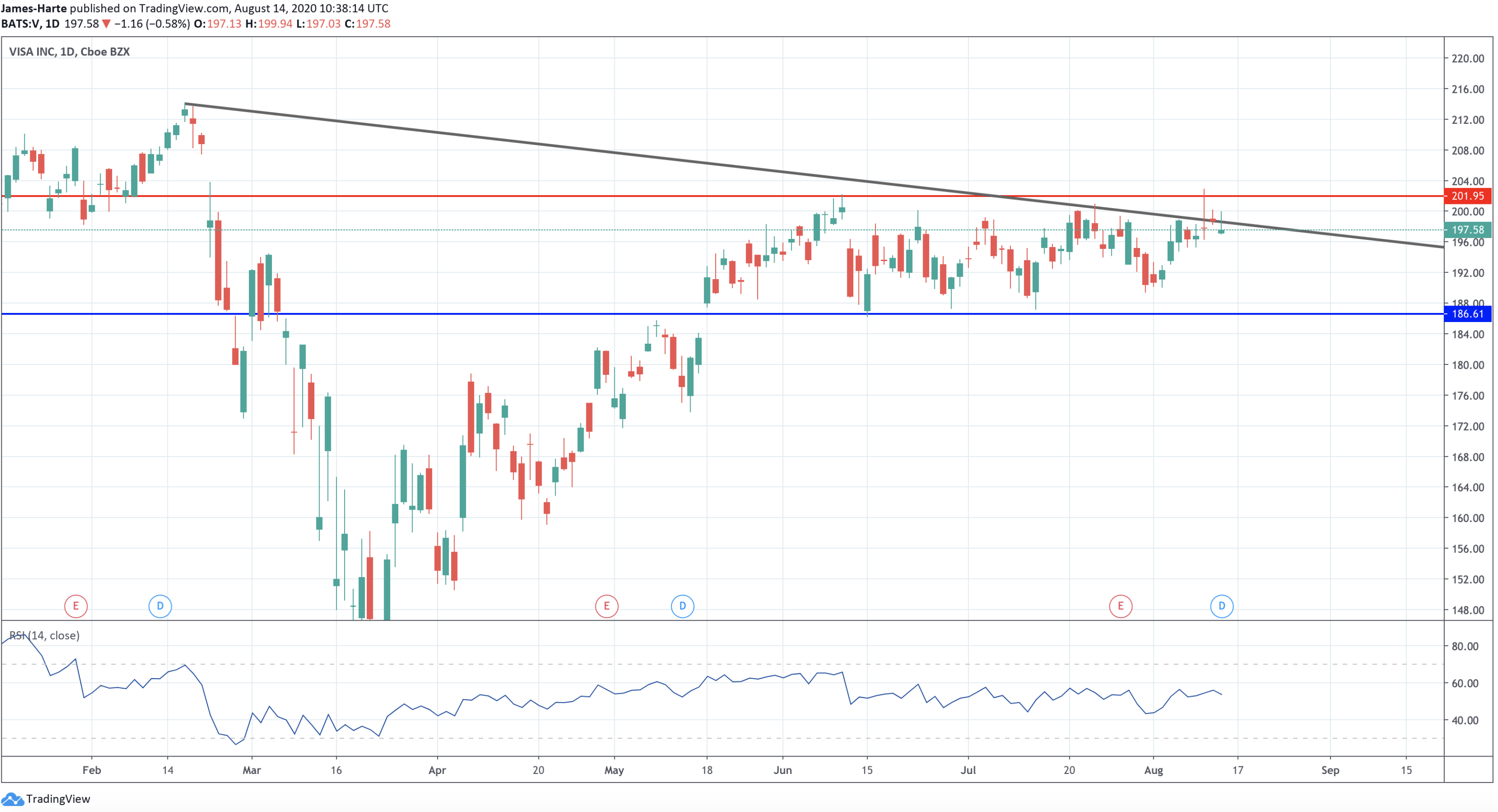 Visa Shares Capped By Bearish Trend Line
