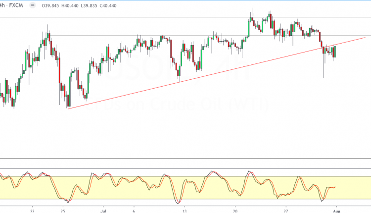 Price bounced off the support area near the 39.00 level to retest the trend line from below.