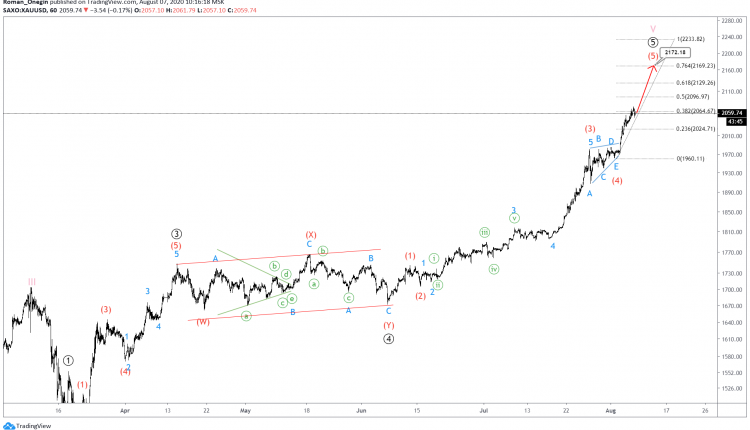 We can expect prices to extend up to 2172. At that level, wave (5) will be at 76.4% of intermediate impulse (3).