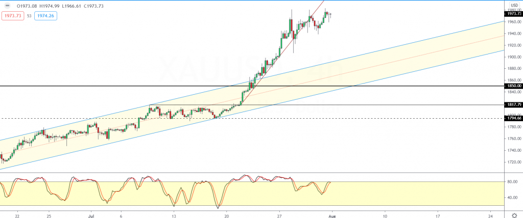 Despite this, a breakout above this level might see gold prices easily reaching out for the key 2000 level.