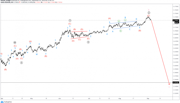The current AUDUSD structure hints at the formation of a cycle degree a-b-c zigzag.