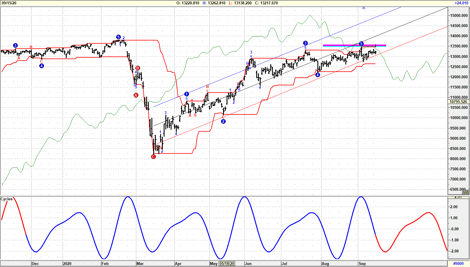 L’indice DAX ha superato positivamente il test di tenuta sul supporto “invisibile” in area 12,750, intercettato su 2STDV rispetto al riferimento regressivo che sta accompagnando il rialzo dallo scorso marzo. Tutto come da attese puntualmente riportate nei report precedenti. Restano da valutare la componente stagionale in disarmonia con quella ciclica per cui, in forza di questo disallineamento, dovremmo assistere ad una continuazione della fase laterale con frenetica alternanza tra rialzi e ribassi anche incisivi e scomposti. Centrato il target finale del movimento da noi stimato in precedenza a quota 13.335 e il MOB (Make Or Break) di esaurimento a 13.470.
