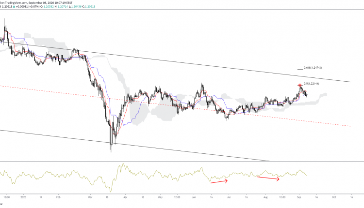 Another attempt towards the top of the descending channel can be expected. A break at this level could see prices hitting the 61.8% Fibonacci, at 1.2474.