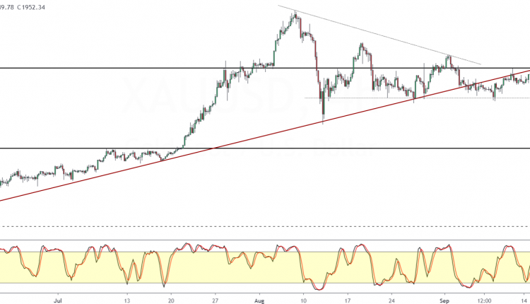 Price action is likely to remain in a sideways range within 1967 and 1911.50. The Fed meeting later today will most likely see this range being breached.