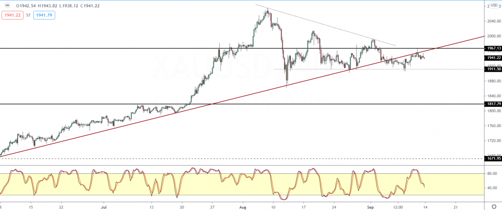 With the support formed near the 1911.50 handle, the sideways range could continue.