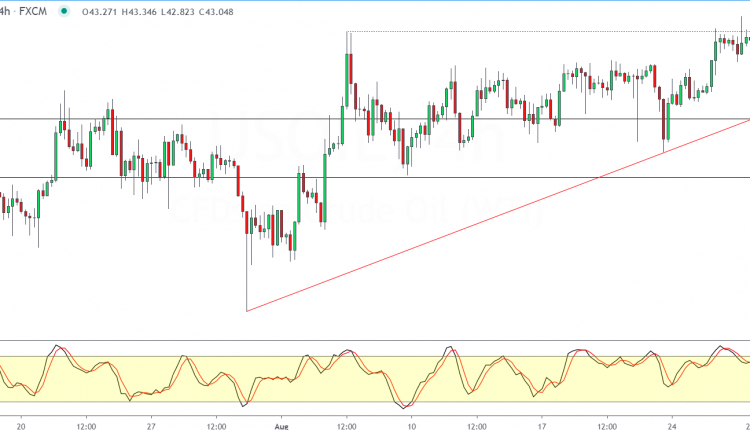 Price action is caught in a range within the 43.50 and 42.00 levels for the moment. Meanwhile, the rising trend continues to hold steady.