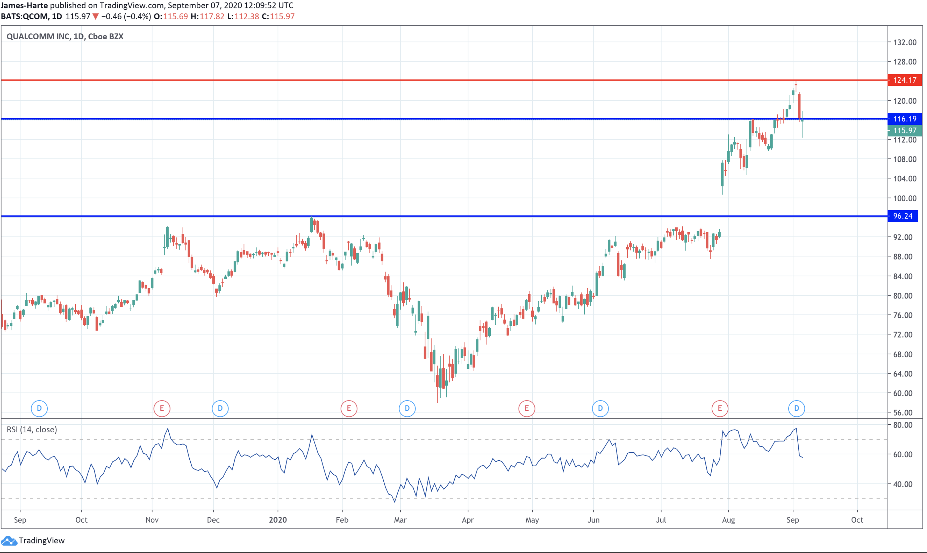 Shares in US mobile phone chipmaker Qualcomm have seen impressive gains recently. Following a bumper 15.8% rally in July, Qualcomm shares rallied a further 12.1% in August. The company extended gains seen in response to a positive Q2 earnings report.
