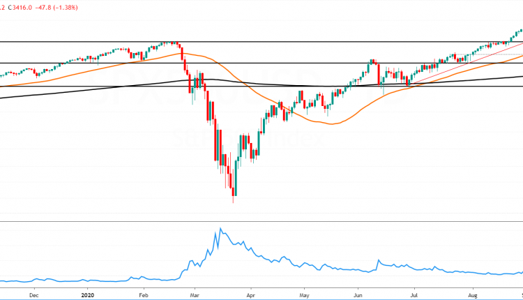 The declines saw price testing the previous all-time high at 3389. Heading into Friday’s close, there was a modest pullback after testing this level.