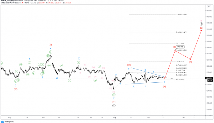 We could see the USDJPY pair appreciate to complete wave (Y) near 110.56. At that level, intermediate wave (Y) will be at 161.8% of wave (W).
