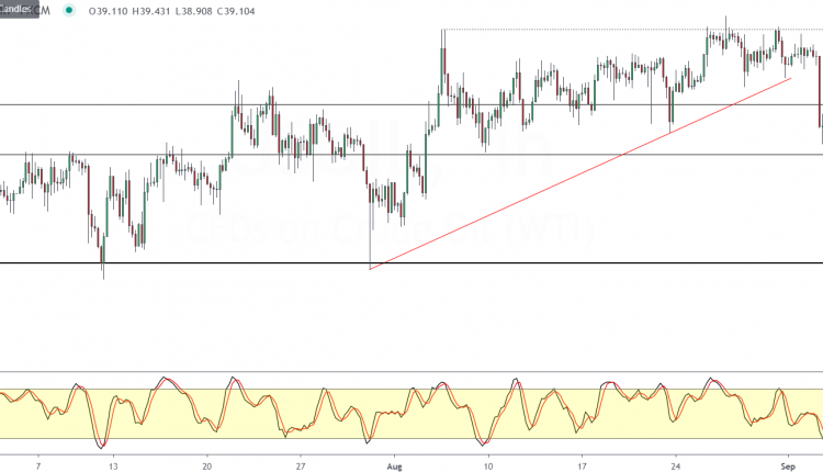 If price rebounds off this level, then we could see a sideways range forming with oil staying within 41.00 and 38.83 levels in the near term.