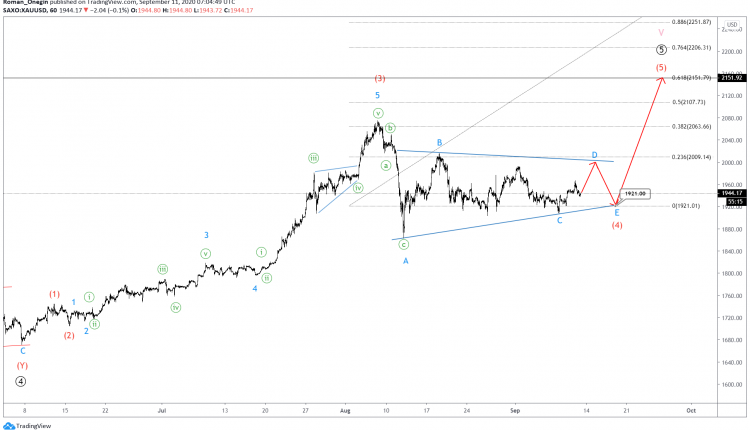 Bulls could then push prices in wave (5) above the previous high of 2075.88.