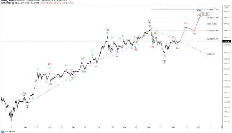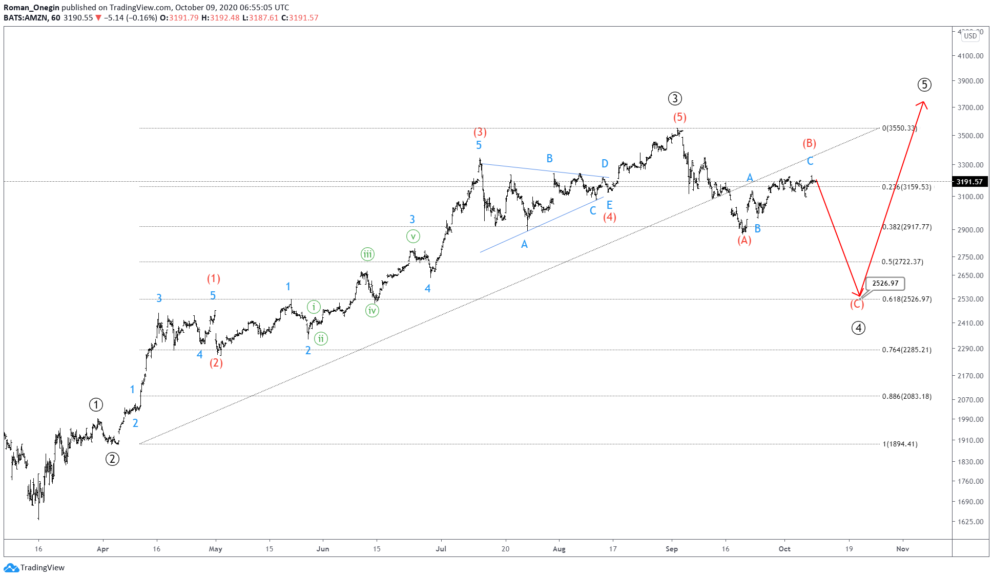 The current AMZN structure shows the formation of a bullish impulse consisting of primary sub-waves ①-②-③-④-⑤.