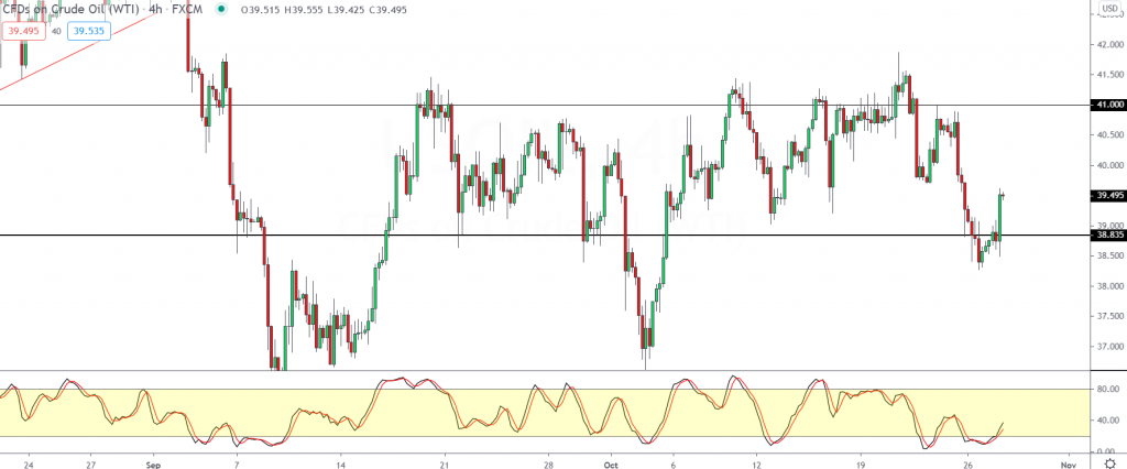 However, oil prices have a lot of ground to catch up to. For the moment, the short term swing low near the 39.65 level could act as resistance.
