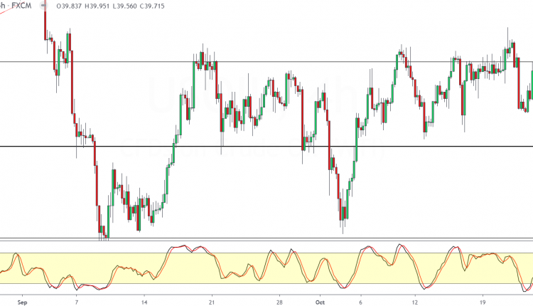 Price action is likely to continue holding the sideways range between 41.00 and 38.83.