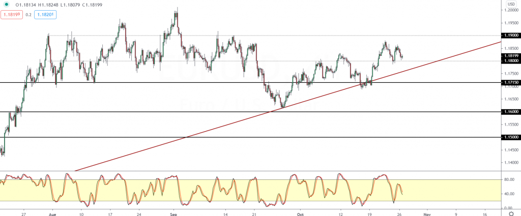 A breakdown below 1.1800 could see price action pushing lower and potentially shifting the short term trend.