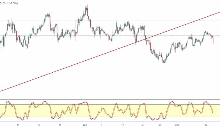 Price action is down over 0.5% intraday amid broad dollar strength. As a result, the euro lost the 1.1800 price level and is now pushing down toward the 1.1715 support level.