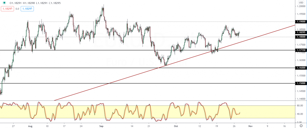 The euro currency is likely to move into this Thursday’s ECB meeting with the 1.1800 floor firmly established.