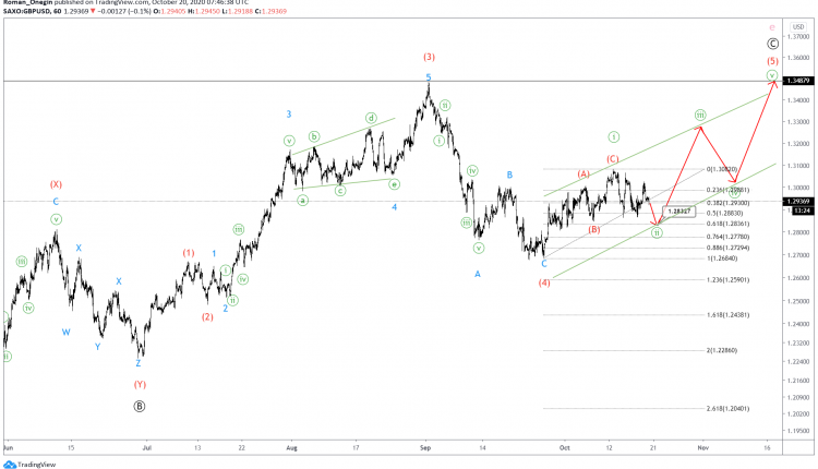 The GBPUSD formation hints at a final wave e which consists of a primary Ⓐ-Ⓑ-Ⓒ zigzag.