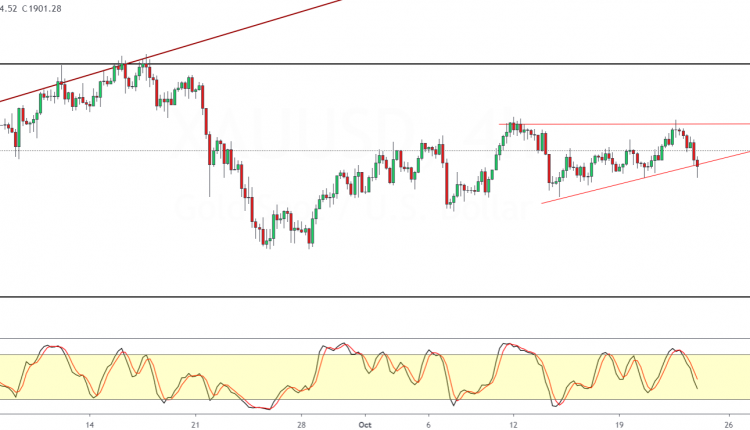 Alternately, price action could continue to consolidate within the trend line and the horizontal resistance level near 1920 region. This could mean there is still scope for prices to breakout higher.