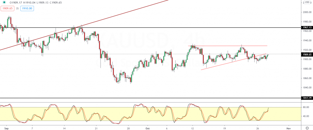 There is no clear trend emerging in the medium term. As a result, prices are back re-testing the 1911.50 level once again.