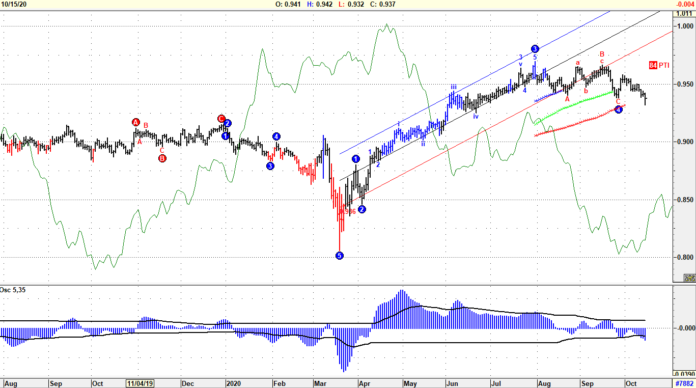 Il Cambio AUDCAD continua a ruotare in area 0.94-0.95 che si pone come resistenza ad ulteriori avanzamenti. Strutturalmente il movimento in essere dallo scorso luglio si va ad incastrare come Onda 4 dell’intero processo impulsivo originato sui minimi di marzo in area 0.80. Complicato dipanarne lo sviluppo dei sotto movimenti minori, ma il minimo più recente in area 0.938 potrebbe aver chiuso in anticipo Onda 4 correttiva e ritardare il riattacco ai massimi in definizione di Onda 5. Vedremo se questo sarà lo scenario più coerente con le implicazioni tecniche assunte che osservano un momentum sempre in grande forza e una impostazione rialzista di tutte le medie di riferimento, peraltro senza scarti speculativi. Riepilogando, la resistenza è stimata 0.96, per cui rimanere al di sopra di quota 0.935-940 è cruciale per attaccare le resistenze “lunghe” e andare ad esplorare nuovi massimi di periodo.