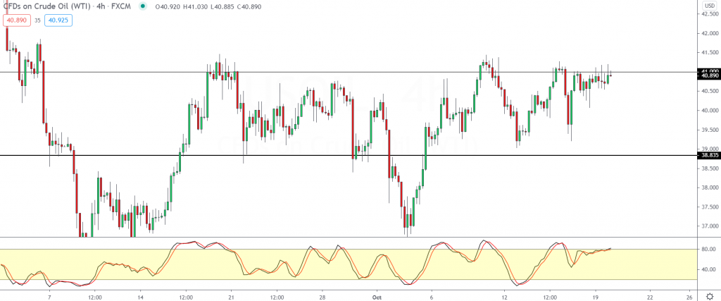 Price action is building upon the upside momentum as oil prices briefly test the 41.00 level.