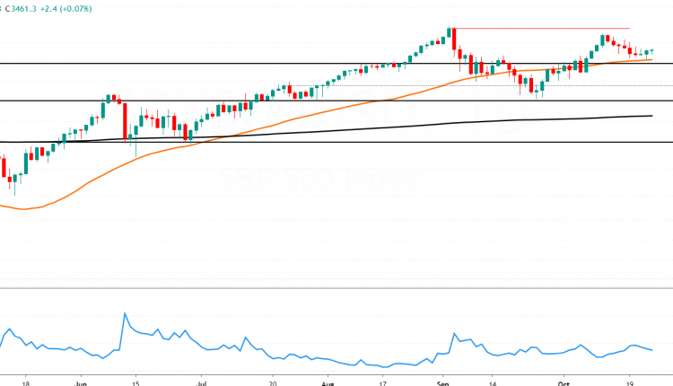 If we see a follow-through to the downside, we might expect further declines in the index. For the moment, price is supported above the 3388 level.