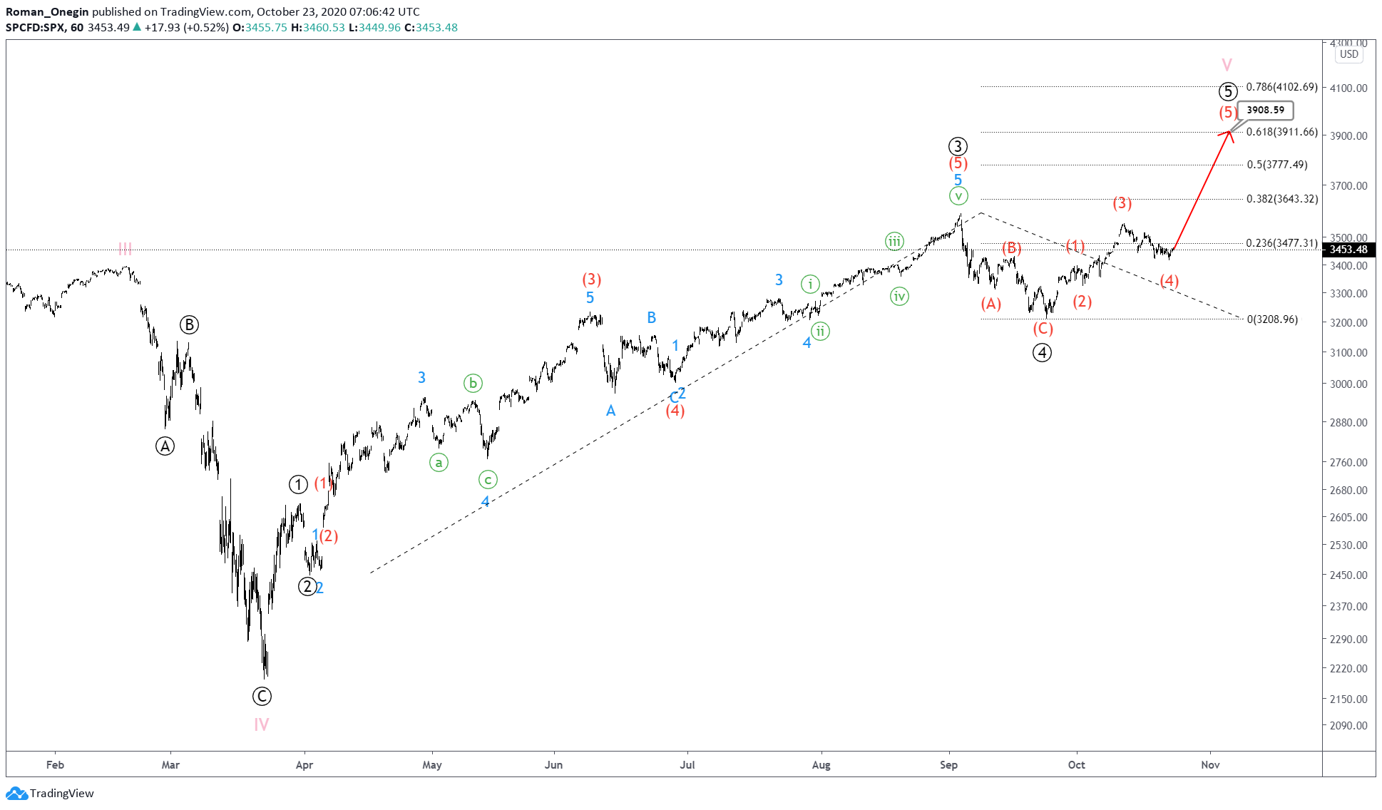 In the short term, we could see the index rise in the intermediate wave (5) near 3908.59.