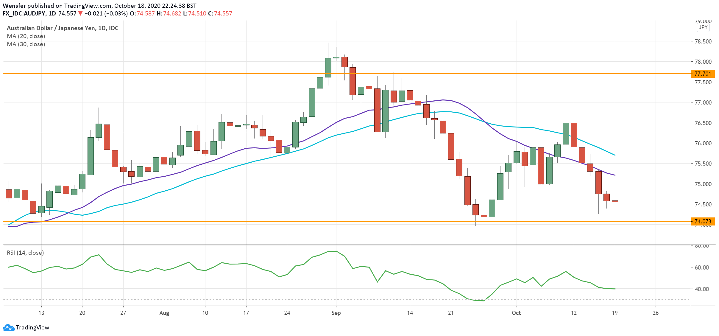 The pair is testing the major level of 74.00 and a downside breakout could bring more sellers on board.