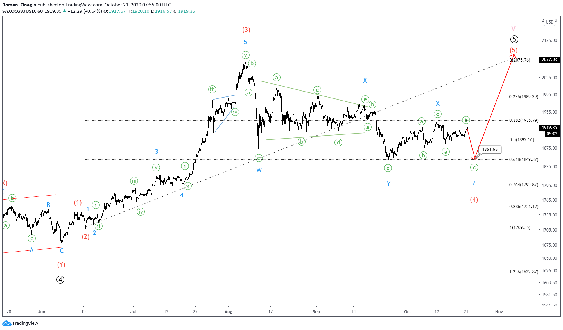 In this case, in the near future, we can see a small impulse ⓒ completes the triple combination near 1851.55 where the correction (4) will be at 61.8% of impulse (3).