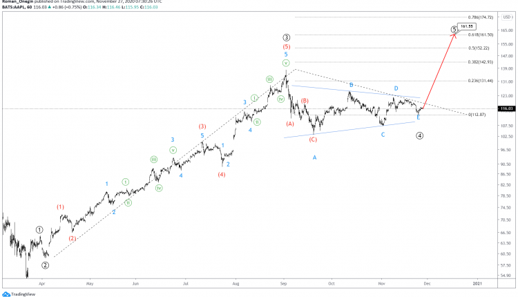 The current APPL structure hints at a bullish impulse consisting of sub-waves ①-②-③-④-⑤.