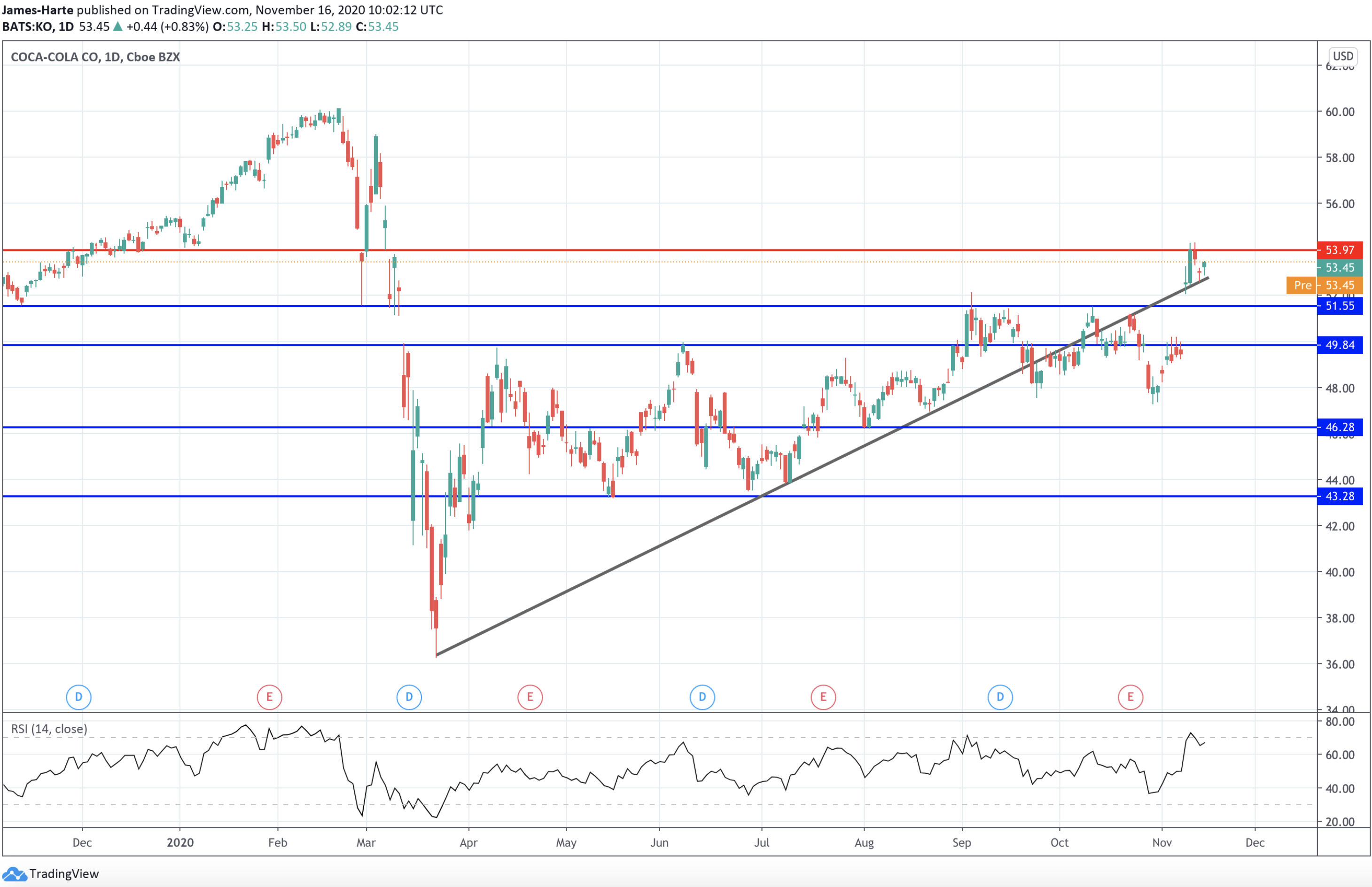 Coca Cola Shares Back Above Broken Trend Line