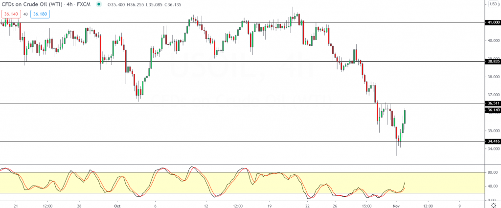 However, if the bullish momentum continues, then oil prices could be aiming for the next key resistance level near 38.83.