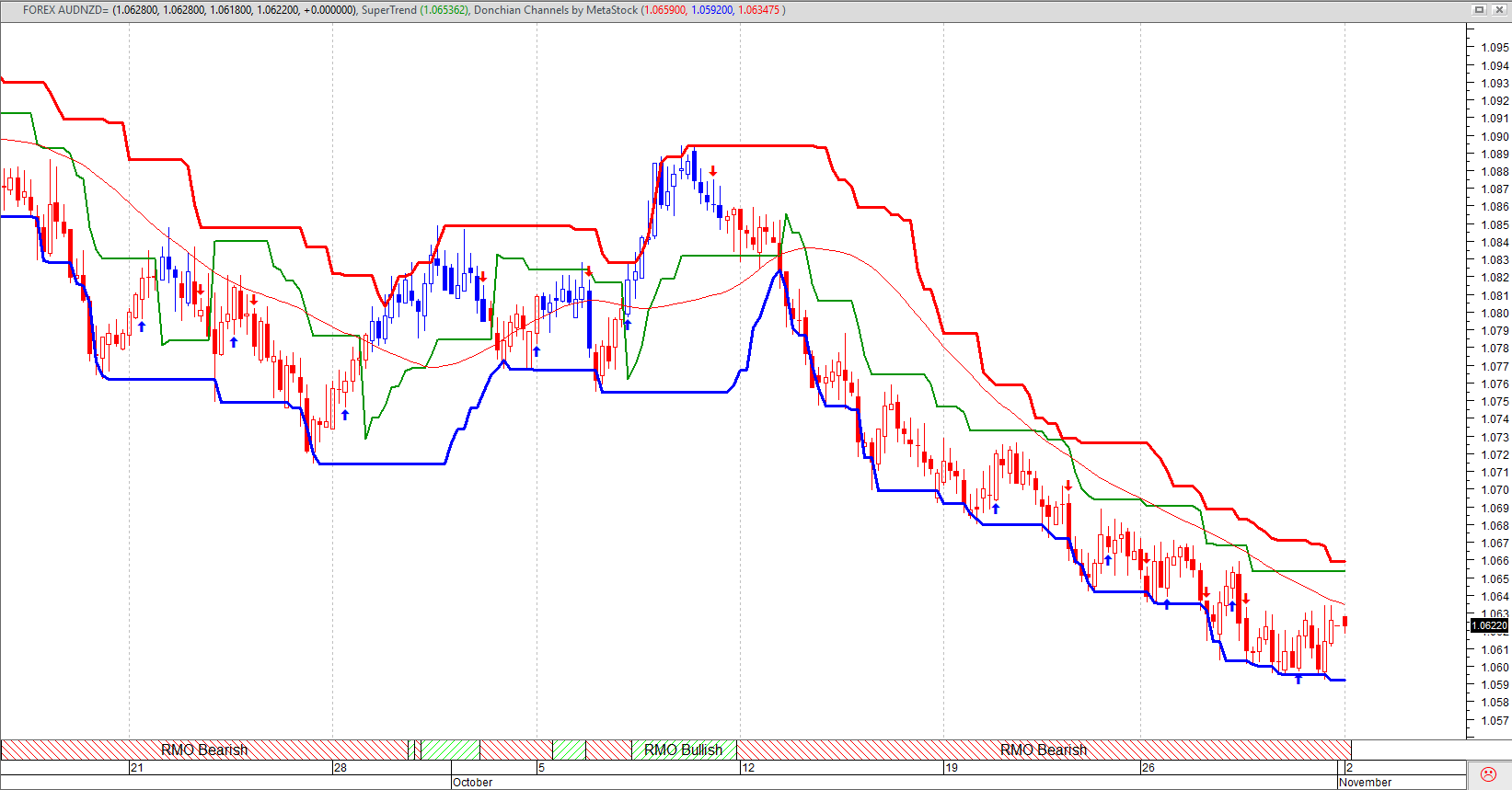 La MM a 20 periodi su Tf a 4h che staziona a 1,063, costituisce un efficace livello di resistenza sul breve termine per AUDNZD che su base 1.059 sembra aver costruito un robusto supporto. Qualche dubbio resta sul MACD, laddove tendenze più lente, metabolizzando il ribasso di ottobre, hanno configurato delle divergenze. In sintesi, l’impostazione sul brevissimo periodo va letta al momento a maggior propensione rialzista, con supporti più immediati visti in area 1.059. Sotto tale livello potrebbero concretizzarsi le possibilità di interessare al ribasso quota 1.045, cioè testare supporti “invisibili” intercettati 2 STDV sotto la retta regressiva che sta accompagnando il ribasso più recente. In questo contesto la fase di relativa debolezza dell’ORO potrebbe penalizzare ulteriormente la valuta australiana rispetto a quella neozelandese ritardando una pronta ripresa delle quotazioni.