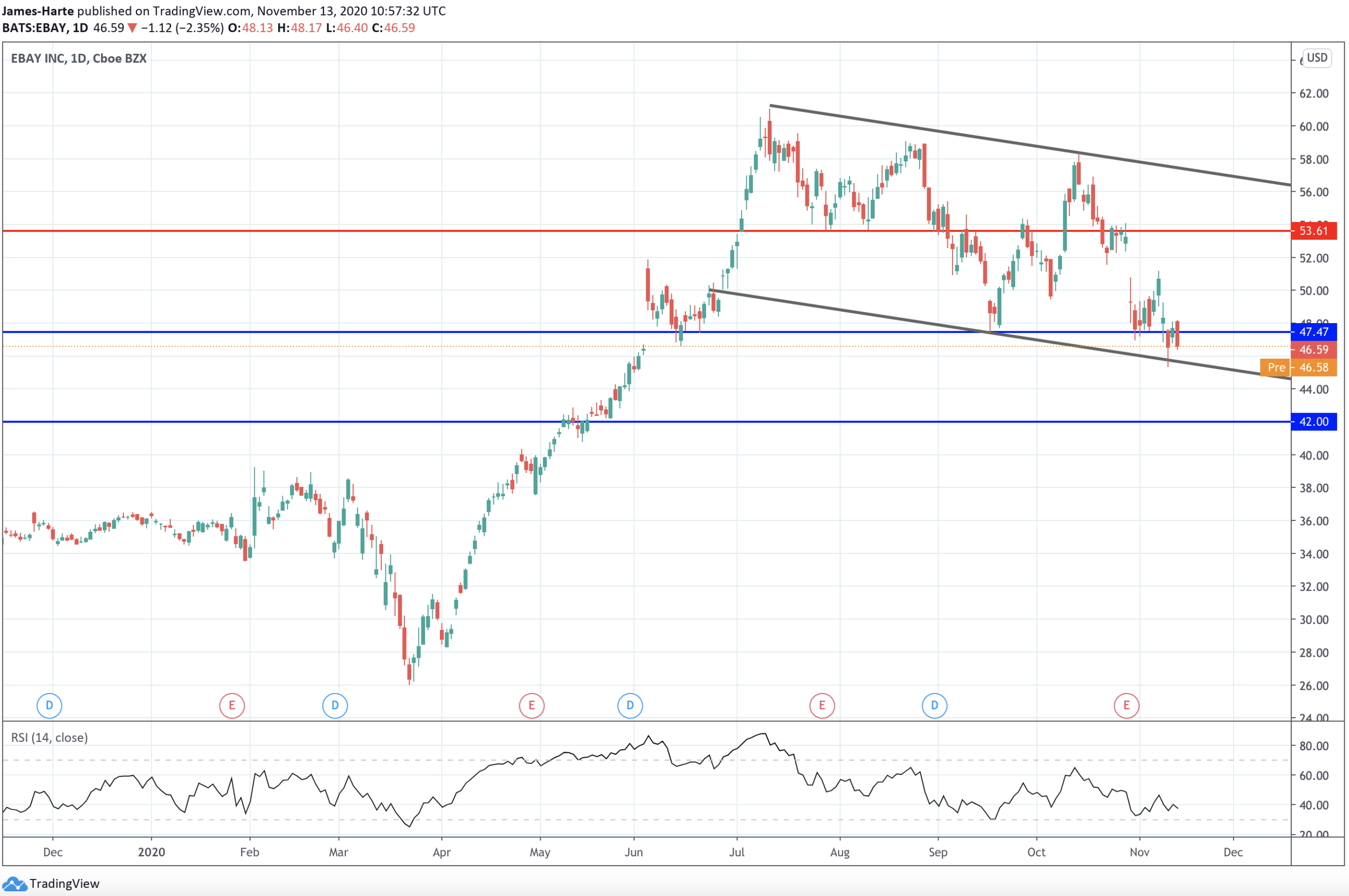 eBay Shares Continue Lower in Bear Channel
