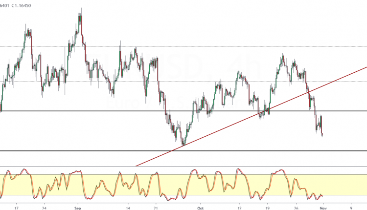 At the current pace of declines, the common currency is on track to drop to the September 28, 29 lows of 1.1611. This also coincides close to the 1.1600 level of support.
