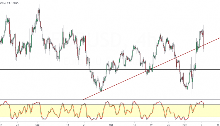 Any downside movements will see the trend line slowing the declines. And below the trend line, the 1.1800 level will likely come in as support.