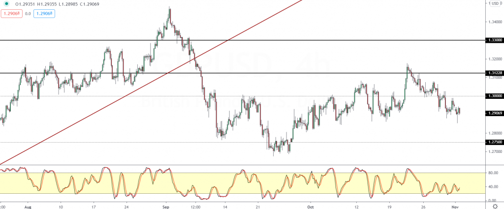 To the upside, GBPUSD will be facing the 1.3000 level of resistance, while to the downside, the 1.2750 level remains open for another test of support.